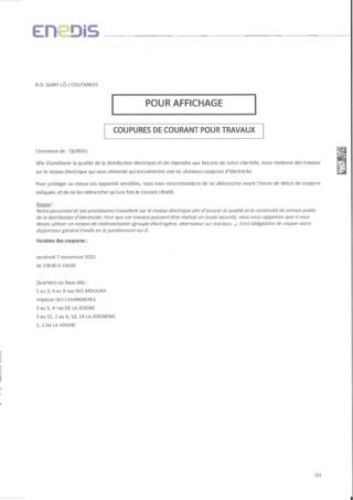 Coupure d’électricité pour travaux le 7 novembre 2025