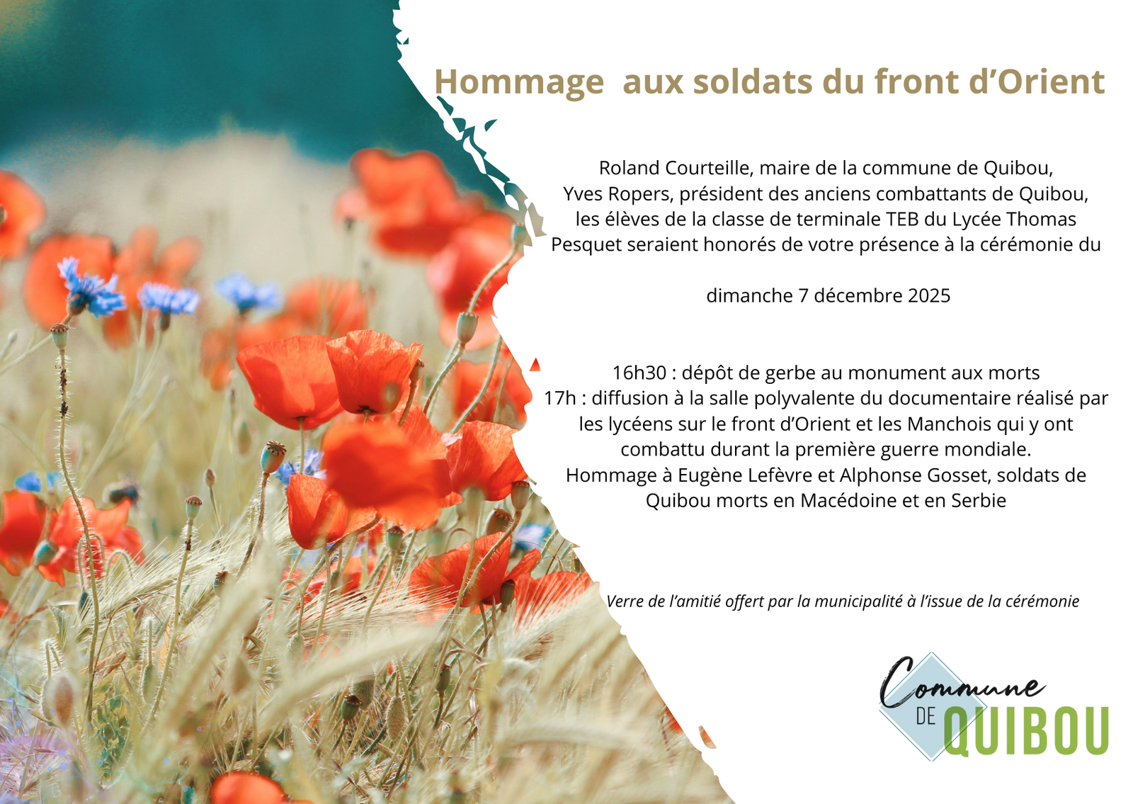 Hommage aux soldats du front d’Orient le dimanche 7 décembre 2025